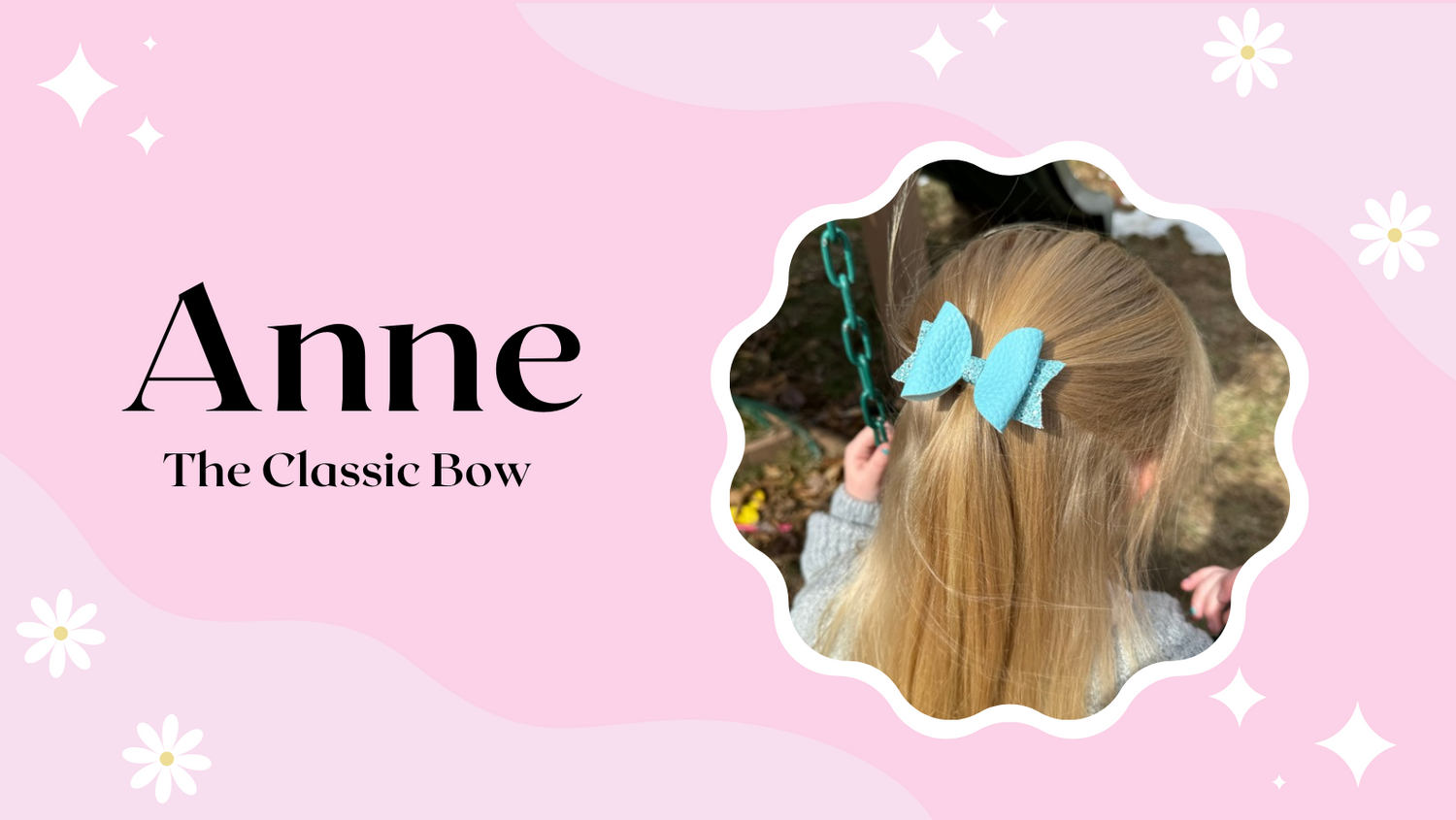Anne is our classic loop bow. She will make a great addition to little girls age 1 year and older. Wear her singly or as a set!
