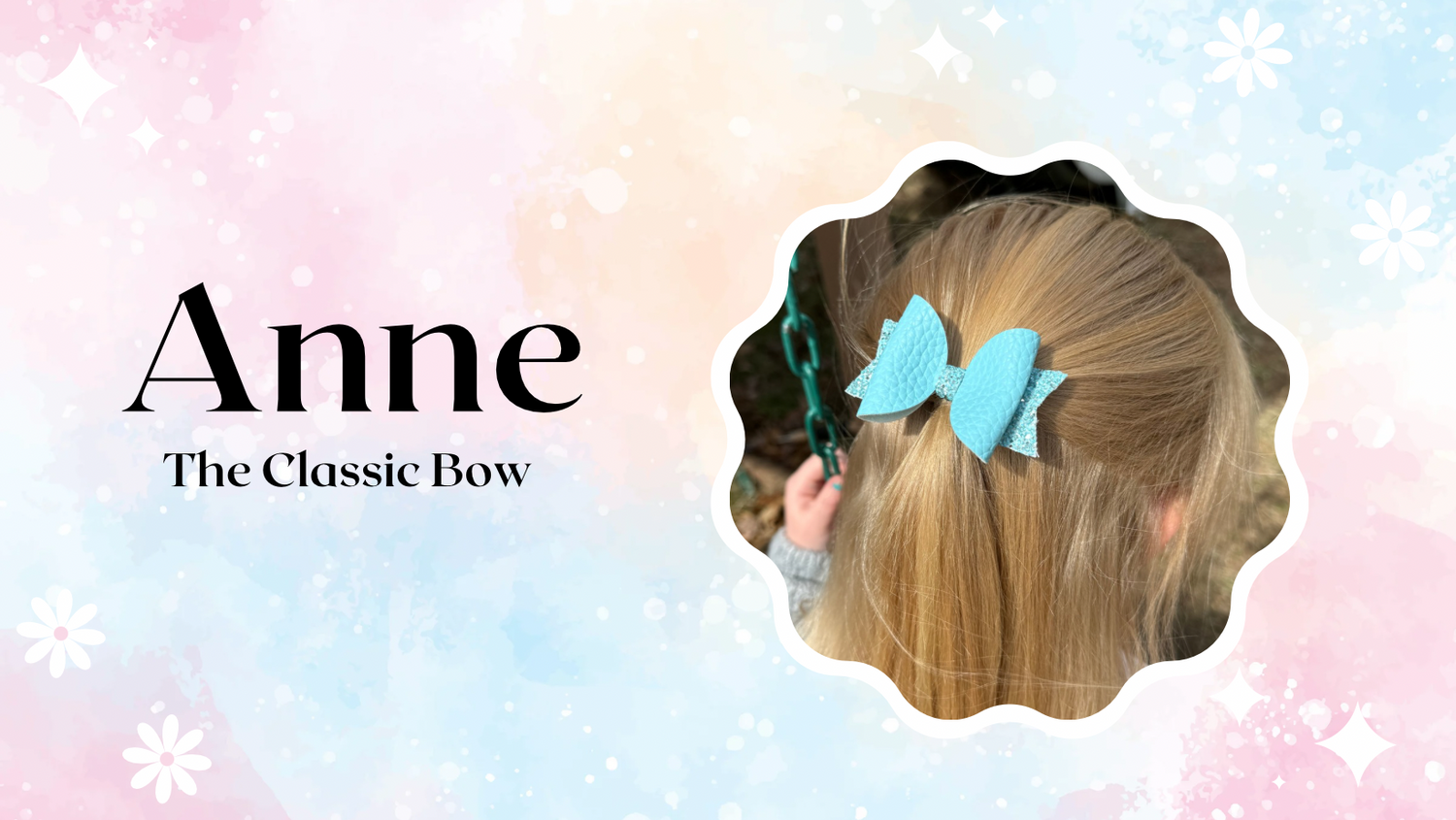 Anne is our classic loop bow. She will make a great addition to little girls age 1 year and older. Wear her singly or as a set!