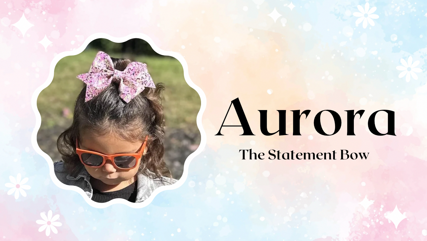 Aurora is our biggest bow and shaped like a pinwheel. She will make a great addition to little girls age 3 years and older or have thick/curly hair.